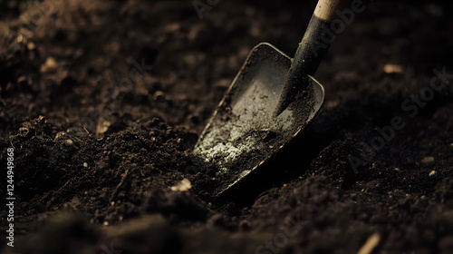 Dramatic Image of Garden Hoe Breaks Through Fertile Soil