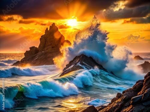Dramatic Ocean Wave Silhouette Photography: Crashing Surf on Rugged Coastline
