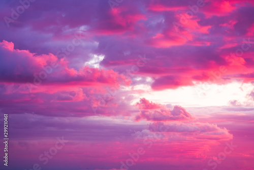 Dramatic pink red sunset, cloudwabe formed by high pression, with beautiful tone color red,pink violet, over the sea, magnificent, nature, sunset concept, add your text