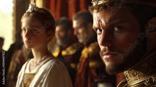 tense, scene, assassination, king, royalty, drama, history, betrayal, emotion, conflict, intrigue, tension, politic, crown, power, expression, portrait, moment, mediaeval, attire, staging, historical, narrative, action, setting, gathering, court, character, monarchy, plot, suspense, tragedy, atmosphere, storytelling, royals, dramatic, significance, bequest, audience, engagement, gravity