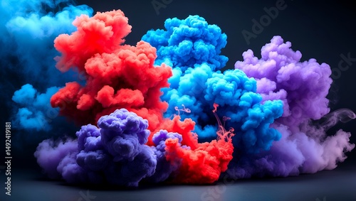 Dramatic smoke swirling in vivid red blue purple