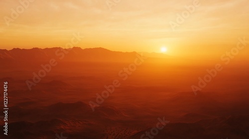sunset, mountain, landscape, arid, orange, sky, horizon, wilderness, dusk, sun, hill, terrain, vista, scenery, environment, nature, remote, desert, geology, elevation, peak, ridge, majestic, cloud, light, evening, travel, panoramic, huge, background, red, rocky, view, outdoors, altitude, serene, quiet, peaceful, earth, barren