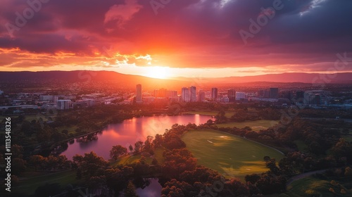 Dramatic sunset views over city skylines and natural landscapes, capturing serene moments