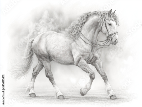 Draw Sketch of a Majestic Horse With Flowing Mane - Windsor Grey