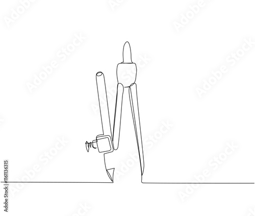 drawing compass with pencil one line art. Continuous line drawing of online learning, school supplies, stationery storage, exam, office supplies, education.