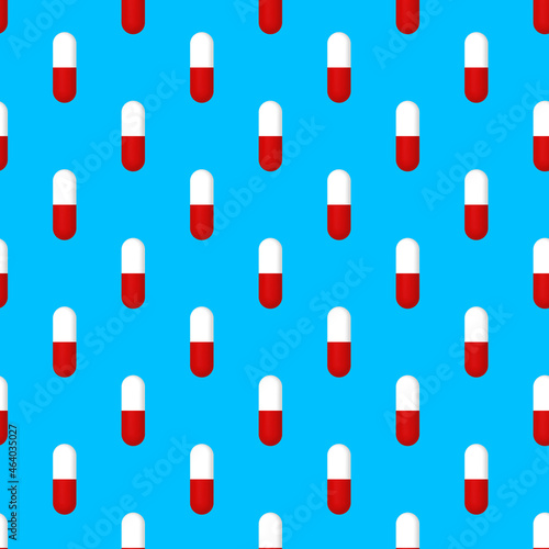 Drawing of images of medical capsules on a blue background. template for overlaying on the surface. medicine. 3D rendering. 3D image. seamless pattern