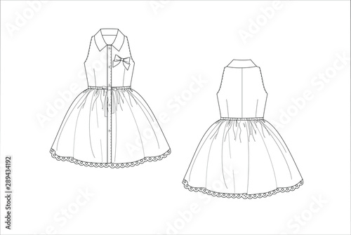 drawn fashion Decorative dress, clothing, Vector illustration in old ink style for girl kids