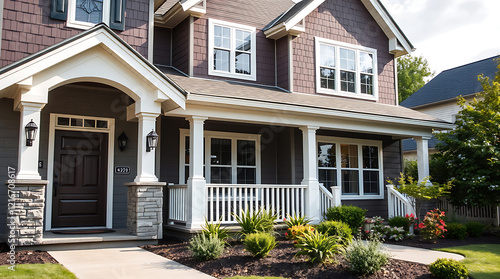 Dream House Exterior: Charming Home with Landscaping and Porch. Perfect for Real Estate and Architecture Enthusiasts