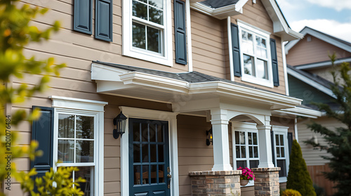 house, home, exterior, architecture, building, residential, property, design, window, door, shingle, siding, roof, gutter, brick, porch, column, entrance, facades, style, landscaping, structure