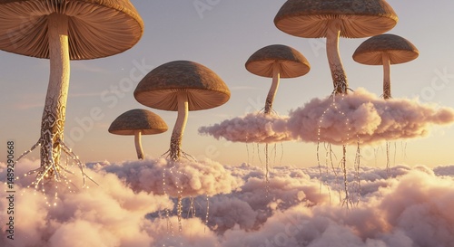 mushroom, sky, cloud, surreal, dream, dreamy, floating, fantasy, landscape, whimsical, nature, aethereal, unreal, perspective, sunset, sunrise, glow, surrealism, horizon, imaginative, vista, magical, wonder, fairy tale, up high, peaceful, serene, tranquil, light, levitation, atmosphere, scenery, artistic, conceptual, creative, illusion, imagination, fantastic, dreamlike, height, aerial, immensity, expanse, stillness, peacefulness, distance, flight
