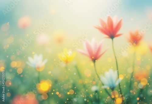 dreamy flower background with glimmering sunlight and prismatic sparkle in a magical meadow, adorable, cute and relax