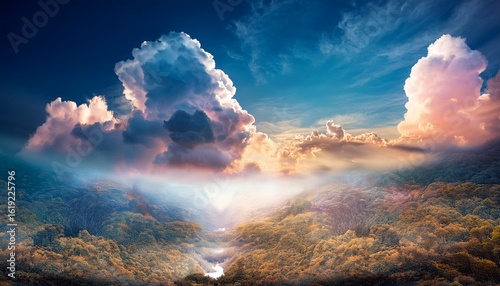 dreamy cloudy sky double exposure stock photo surreal landscape