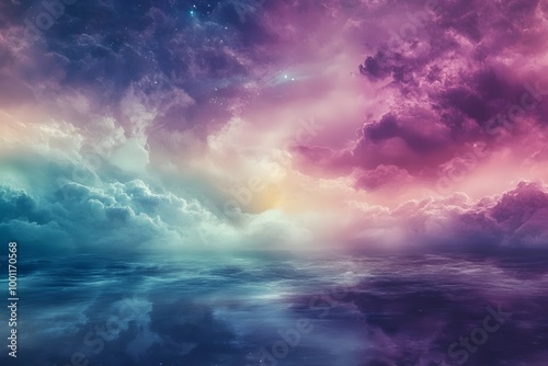 cloud, sky, cloudscape, dreamy, aethereal, surreal, fantasy, abstract, art, water, purple, pink, blue, gold, light, sun, sunset, sunrise, horizon, bright, vibrant, colourful, nature, landscape, background, wallpaper, digital artwork, artistic, beautiful, peaceful, tranquil, serene, magical, wonder, inspiration, imagination, atmospheric, water reflection, golden hour, abstract landscape