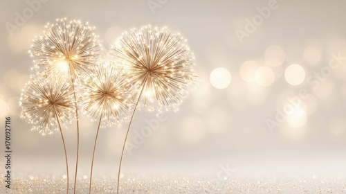 Dreamy Dandelions Floating in Soft Light with Bokeh Background for Elegant Celebrations and Occasions