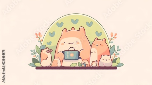 dreamy, herbal, warmth, capybara, hot drink, plant, minimalist, flat, pastel, natural, cosy, animal, rodent, wildlife, drink, beverage, lifestyle, decor, design, cute, cartoon, character, indoor, home, office, environment, peaceful, relaxing, mammal, cavy, pet, mug