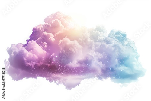 Dreamy pastel clouds with sparkles, cut-out, clipping path