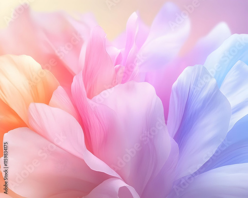 Dreamy pastel flower petals, soft focus, delicate bloom, vibrant colours, abstract floral background, romantic, serene, gentle, spring, summer.