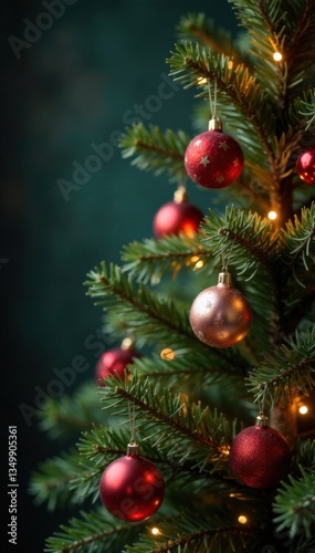 Dried Christmas tree branches with ornaments and lights, winter, lights, ornaments