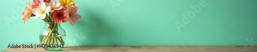 Dried flowers in vase, rustic wooden table, mint green wall , interior, simple