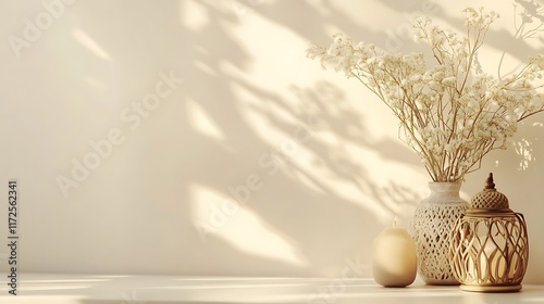dried, flower, vase, candle, lantern, minimalist, still, life, beige, cream, white, neutral, shadow, sunlight, light, home, decor, interior, design, aesthetic, calming, serene, peaceful, tranquil, cosy, warm, soft, gentle, elegant, simple, rustic, chic, natural, organic, texture, pattern, arrangement, composition, beauty, art