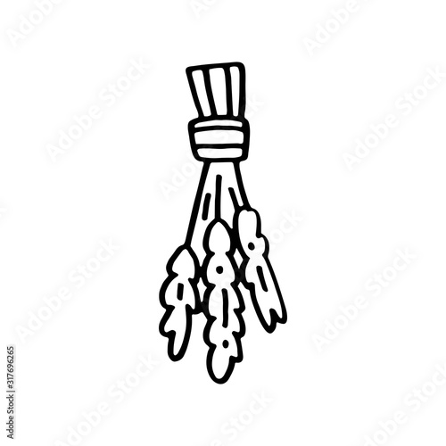 Dried herbs hand drawn doodle vector line art illustration, sticker, icon. Black monochrome design. Isolated on white background. Easy to change color. Design element. Magic, witchcraft tools. Witcher