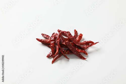 Dried red chili or chilli cayenne pepper isolated on white background.
