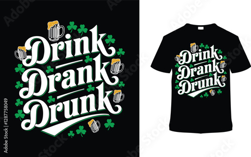 Drink Drank Drunk St. Patrick's Day T-shirt Design, apparel, vector illustration, graphic template, print on demand, textile fabrics, retro style, typography, vintage, eps 10, element, Saint Tee Shirt