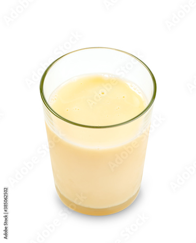 drinking yogurt mixed fruits and vegetables flavour in the glass isolated on white background ,include clipping path