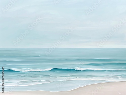 drizzle, beach, serene, seascape, realistic, art, mute, blue, isolate, white, realism, tranquil, horizon, scenery, brushstroke, sunrise, oceanic, detail, shoreline, texture, coastline, landscape, gentle, artwork, waterscape, expression, harmony, high-coloured, colourful, peaceful, aesthetic, modern, beautiful, summer, nature, blissful, acrylic, tropical