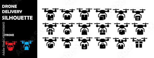 Drone Delivery Silhouette Vector Set – Flying Parcel Drones and Modern Logistics Icons