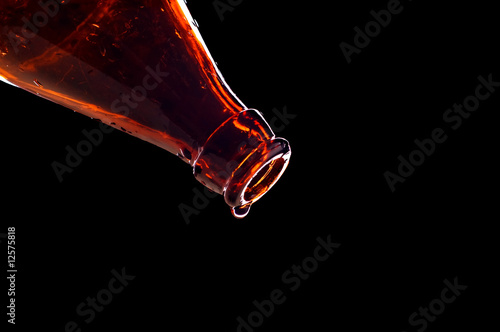 drop falling from bottle isolated on black