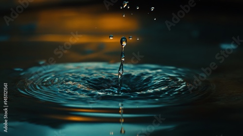 drop of water falling on a wide expanse of water, focus on the drop as it falls on the water generative ai