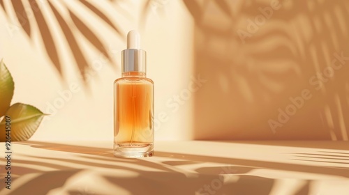 Dropper Bottle of Serum with Palm Leaf Shadows