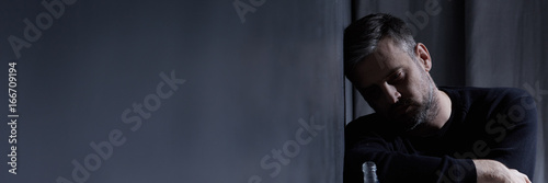 man, alcohol, drunk, panorama, bottle, alcoholic, black, mood, loneliness, sick, addiction, widower, divorcee, disease, depressed, sorrowful, depression, glasses, vodka, desperation, abuse, divorce, addicted, alcoholism, despair, alone, broken, lonely, mourning, mental, problem, separation, photogenic, mature, unhappy, dark, interior, panoramic, banner, header, background, image