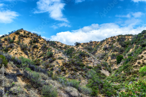 Dry hillsides and blue sky with room for copy text