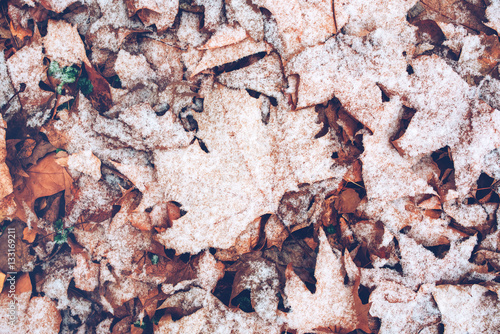 maple, leaf, dry, snow, winter, under, topview, abstract, nature, season, background, texture, pattern, snowflake, canada, cold, frost, glacé, weather, beauty, outdoors, park, snowfall, nobody, foliage, textured, canadian, daylight