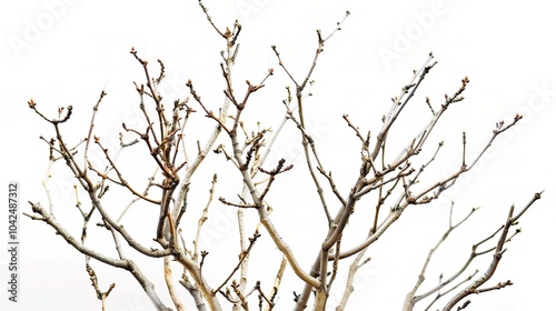 Dry tree branches isolated on white background - a stark and delicate sight. This image presents dry tree branches standing out against a pure white backdrop