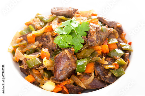 Duck hearts stew vegetables