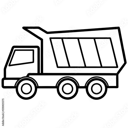 Dump Truck Line Art Construction Vector Illustration – Clipart & Cartoon Design, High-quality dump truck line art vector illustration, perfect for clipart, cartoons, and construction designs.