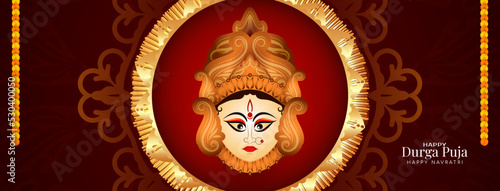 Durga Puja and Happy navratri traditional Hindu indian festival greeting banner