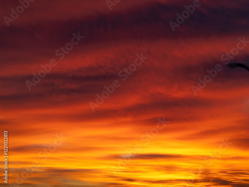Dusk, Sunset Sky Clouds in the Evening with colorful Orange, Yellow, Pink and red sunlight and Dramatic storm clouds on Twilight sky, Landscape horizon
