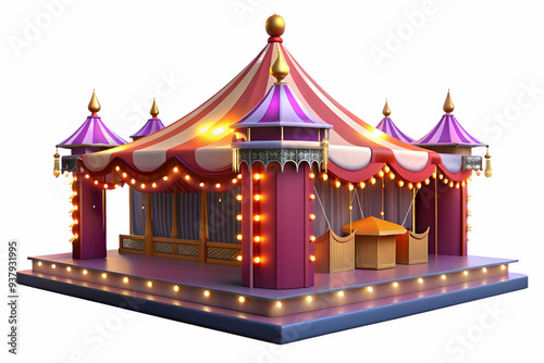 Dussehra Fair with Glowing Stalls concept as Wide shot of a Dussehra fair at night with glowing stalls and colorful lights illuminating the scene the glossy effect adding a festive and lively atmosphe