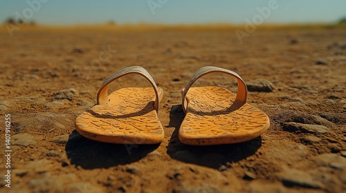 sandal, dusty, earth, dry, cracked, field, ground, summer, heat, drought, shoe, footwear, travel, vacation, adventure, nature, landscape, desert, sun, hot, texture, brown, orange, stone, dirtied, road, pathway, terrain, background, relaxation, holiday, freedom, exploration, journey, trip, foot, sole, warm, mud, dryness, arid, dust, barefoot beach