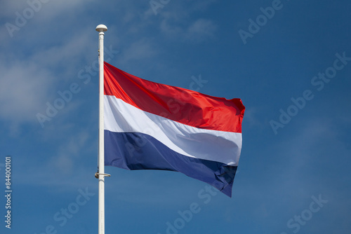 holland, flag, sky, blue, waving, color image, flying, horizontal, national flag, no people, patriotism, photo, pole, red, symbol, oneness, wind, yellow