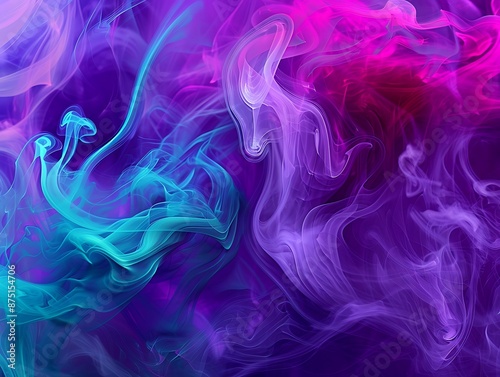 Dynamic abstract composition with purple, magenta, and blue colors and swirling smoke effects..