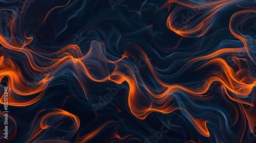 dynamic abstract swirls and waves in dark navy and orange energetic line art background