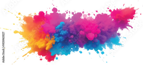 Dynamic and Expressive Watercolor Splash with Bright, Radiant Brush Streaks and Aquarelle Stains, Creating a Colorful and Lively Burst of Colors Against a Crisp White Canvas.