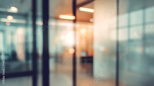 Dynamic business environment blurred office interior with doorway perspective modern workplace scene