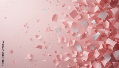 Dynamic confetti explosion celebrating joyful moments in a soft pink background creative visual content abstract art aerial view artistic concept