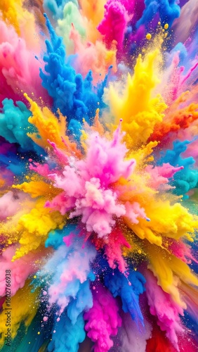 Dynamic Explosion of Vibrant Colors and Powder Paint in Abstract Design